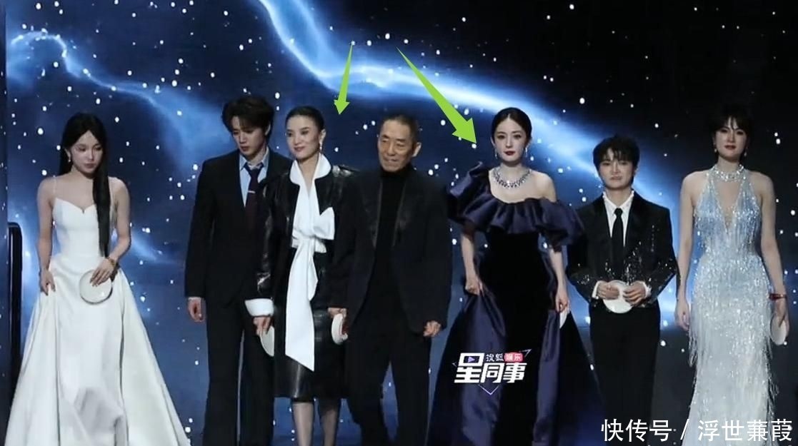 同场的周深与姚安娜均沿红毯旯旮慢步前行,姿态谦敬;唯独杨幂直接朝张艺谋导演地点斜切而去,肢体语言充满明确的视觉主导意图。