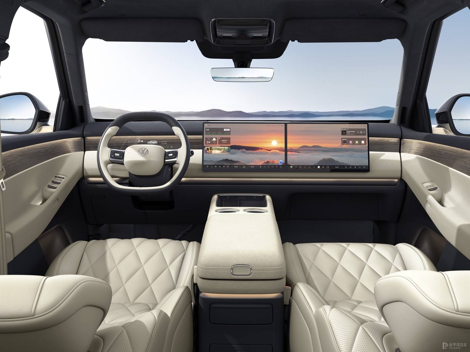 在建立方面,ID.ERA 9X搭载行业首发的九屏交互系统,由8.88英寸智能状貌魔术屏、6英寸二排门板智控魔术屏、15.6英寸 2.5K超清中控双联屏、智能 W-HUD、21.4 英寸 3K 超清后排吸顶屏、流媒体后视镜与拓展手机屏构成。其中,Smart Surface魔术屏在关闭时可与内饰交融,二排门板魔术屏还具备外后视镜补盲功能;智能 W-HUD 复古随速诊疗功能,可字据车速调整信息显现层级。同期,车机系统复古多屏画面流转、智能语音交互、智高手势交互等多种操作方式,语音交互隐匿车内4大音区。临了新车搭载ERA Sound智能音响系统,领有27个扬声器与4个孤苦头枕音响,复古无麦K歌,车外还可播放音乐