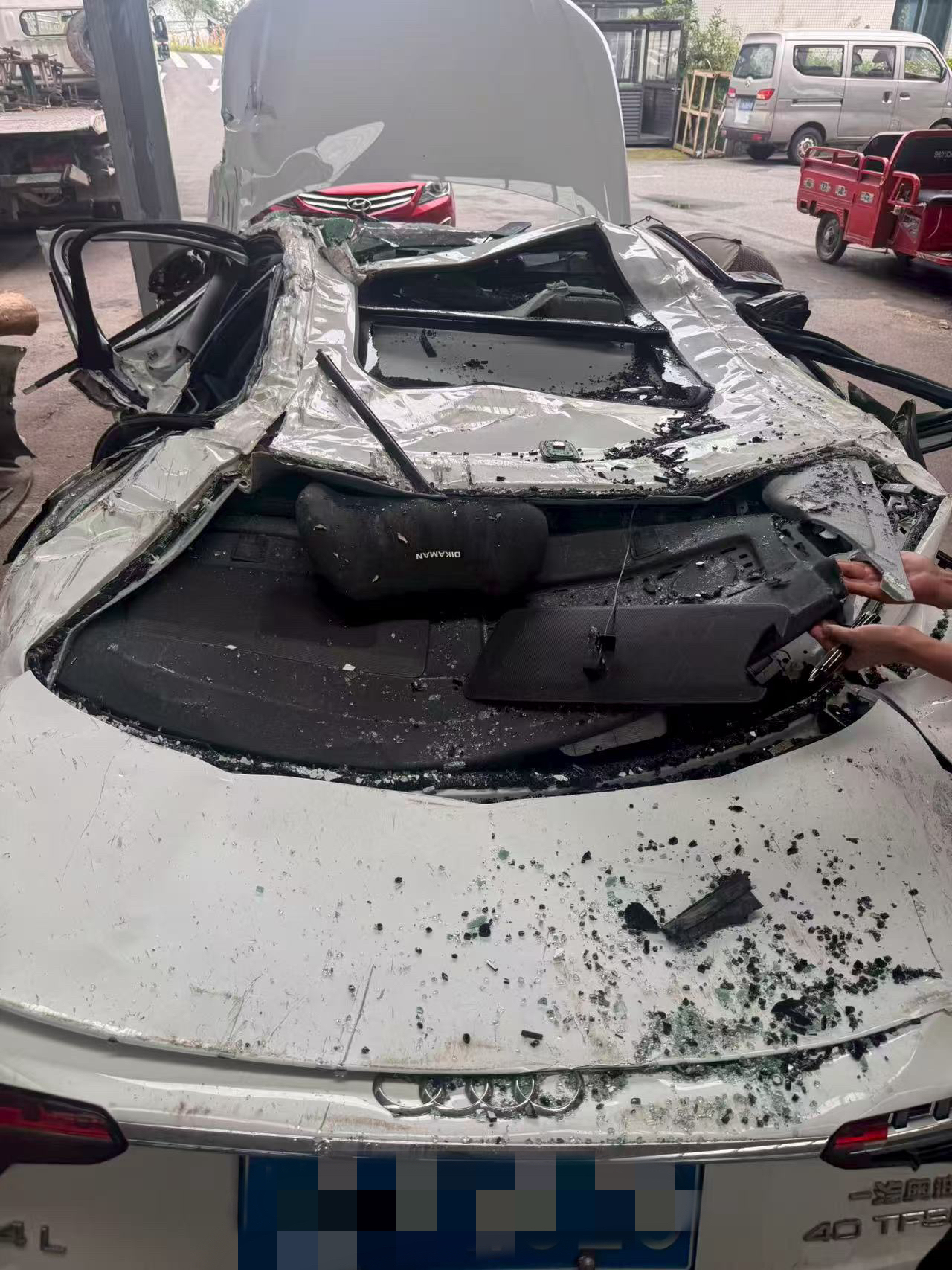 李先生从交警处了解到,这辆罐车载重31.3吨。加上自己车重,总质料当先40吨。高大的压力让李先生的车发生严重变形。“扫数这个词大梁压得成V字型,轮胎也爆了,就我驾驶室阿谁A柱,承受了很大的力,固然变形了,但没断,给我留了满盈的空间。”