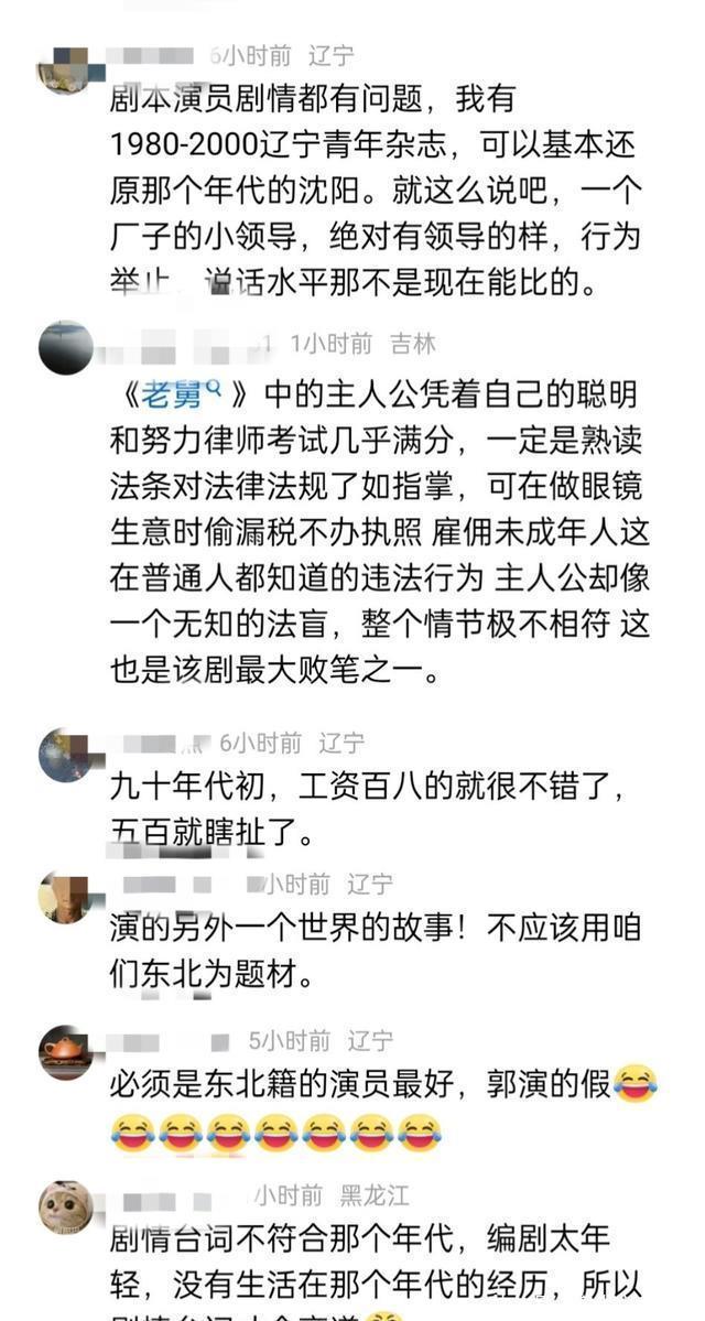 在好多褒贬区,王人出现了ip为东三省的褒贬,吐槽这部剧不允洽践诺,剧情太过时弊和超前。 一是剧中的收入与1993年严重不符 好多网友默示阿谁时期东北的收入不高,好多东说念主工资不祥就一两百块钱,家中一般也就有几千块钱进款,万元户属于绝顶有钱的东说念主了。 可在剧中,不仅崔国明工资高达500多,他那些同学作念个小贸易果然月收入王人是几千块。