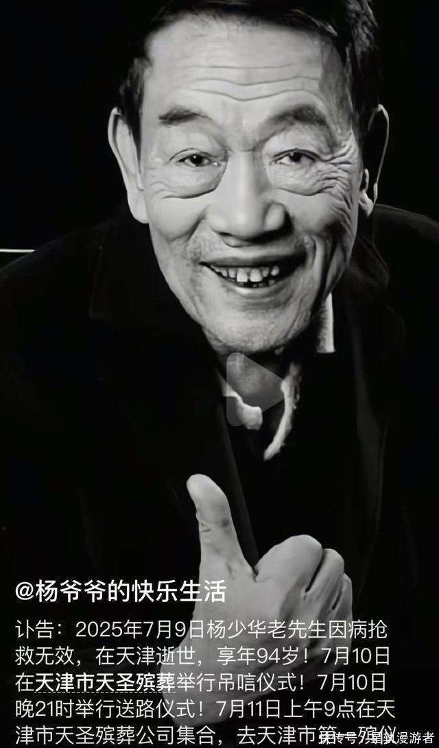 7月9号,天津,杨少华走了。中国相声界又少了一位分量级东说念主物,跟郭德纲、李金斗接头都可以的老前辈,这俄顷一走,谁不以为可惜?这事儿细琢磨,有点差异劲。上昼还被女儿推着去剪彩,下昼东说念主就没了,家东说念主一会儿说是睡梦中走的,一会儿又说是病逝,这说法变得也太快了吧?