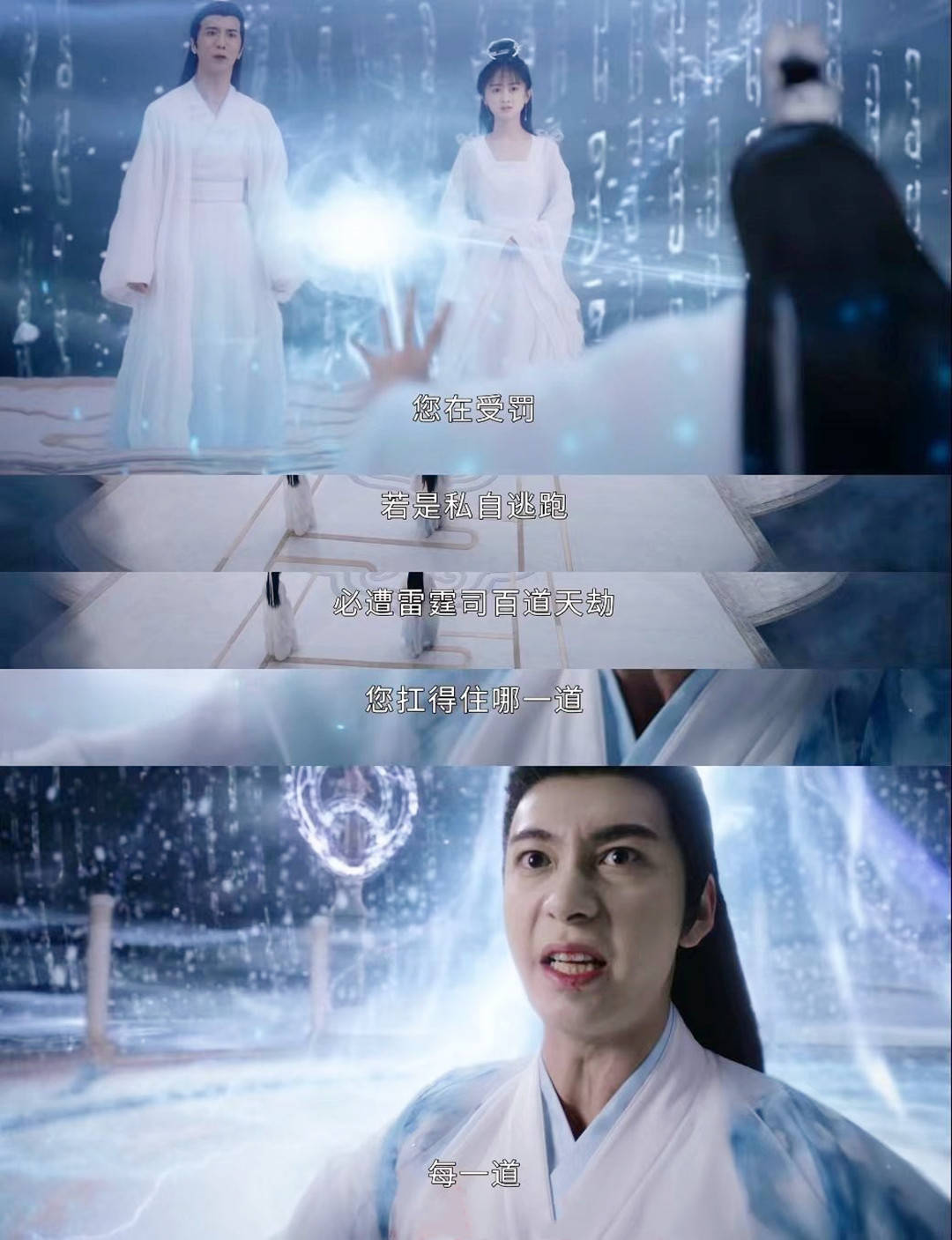 整部剧里的经典名方式应该是玄商冲出雷霆司带夜昙离开的情节,我愿称之为“偶像剧封神片断”。夜昙身份披露,天帝要将她正法时,玄商拼尽全力突破天雷。当飞池问他百说念天劫他承受得起哪一齐时,玄商那句斩钉截铁的“每一齐”直击东说念主心。