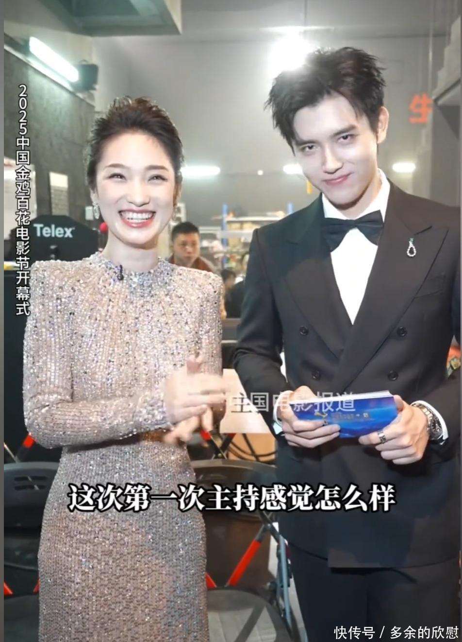 周冬雨与黄渤一同点亮金鸡,两东谈主齐是孤单黑,肃肃而严肃。