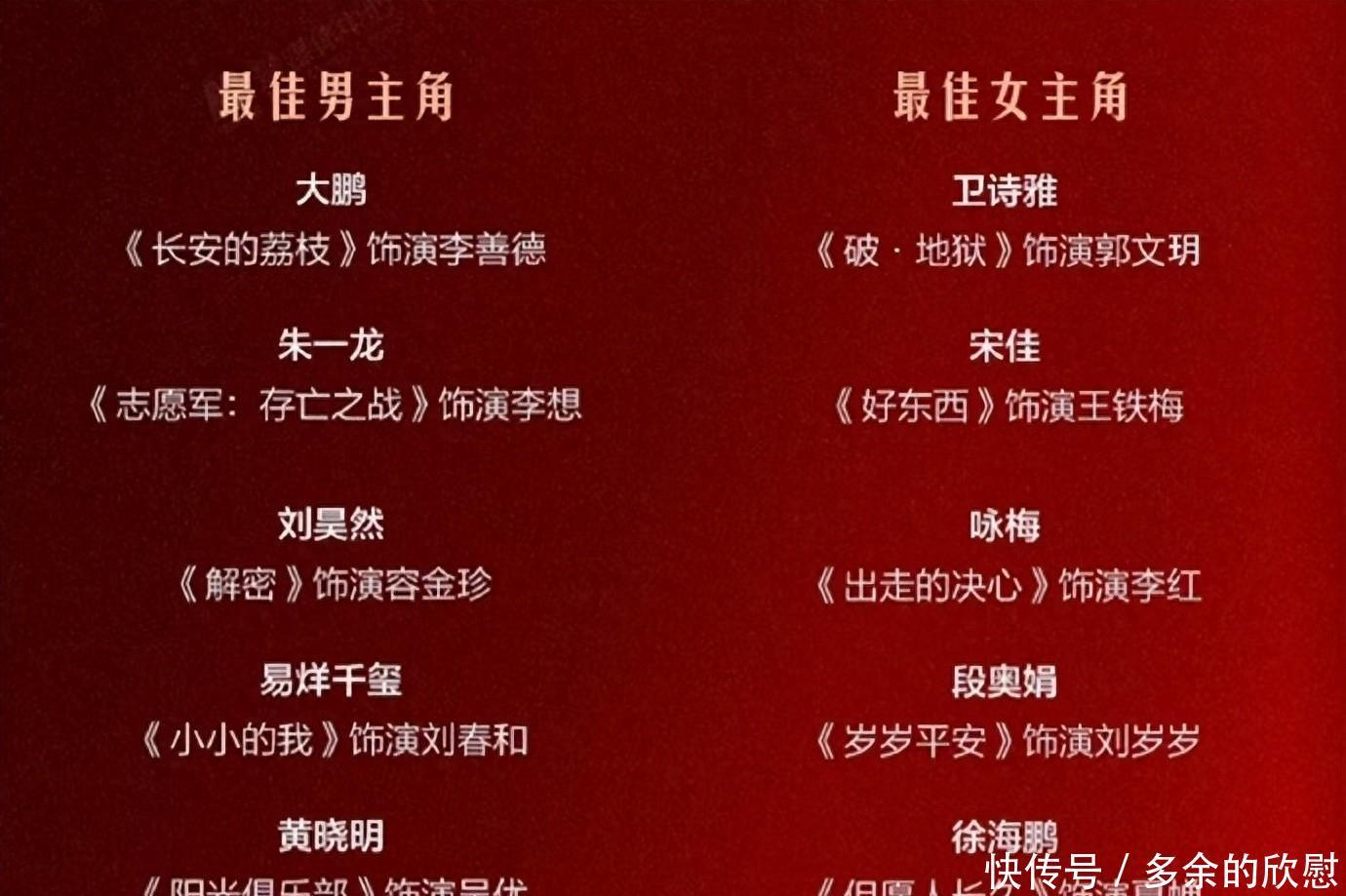 另一边,最好女主入围的卫诗雅、宋佳、咏梅、段奥娟,徐海鹏。