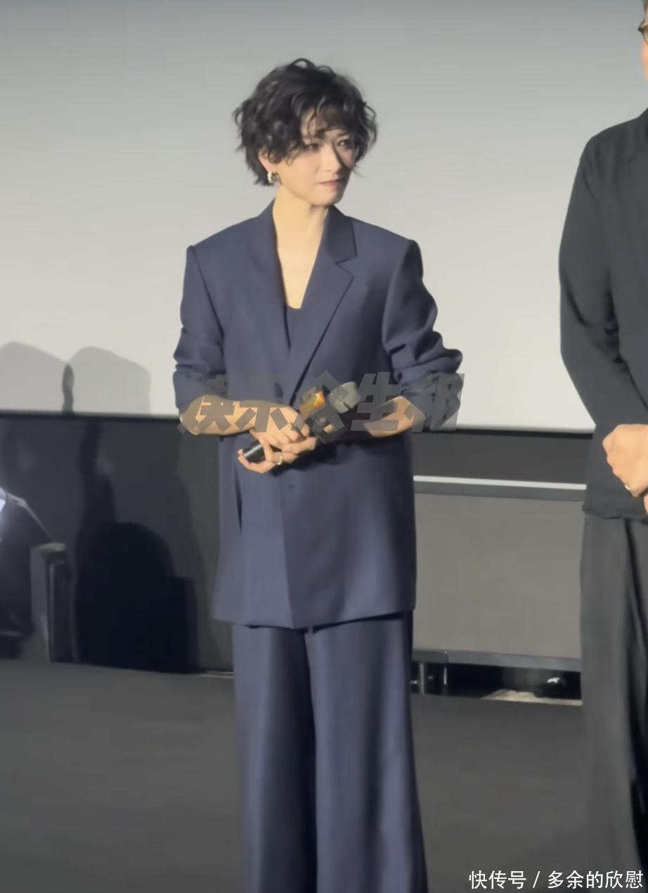 万茜出席金鸡国产电影展启动庆典,穿的是一套藏蓝色的西装,搭配一头短短的鬈发。