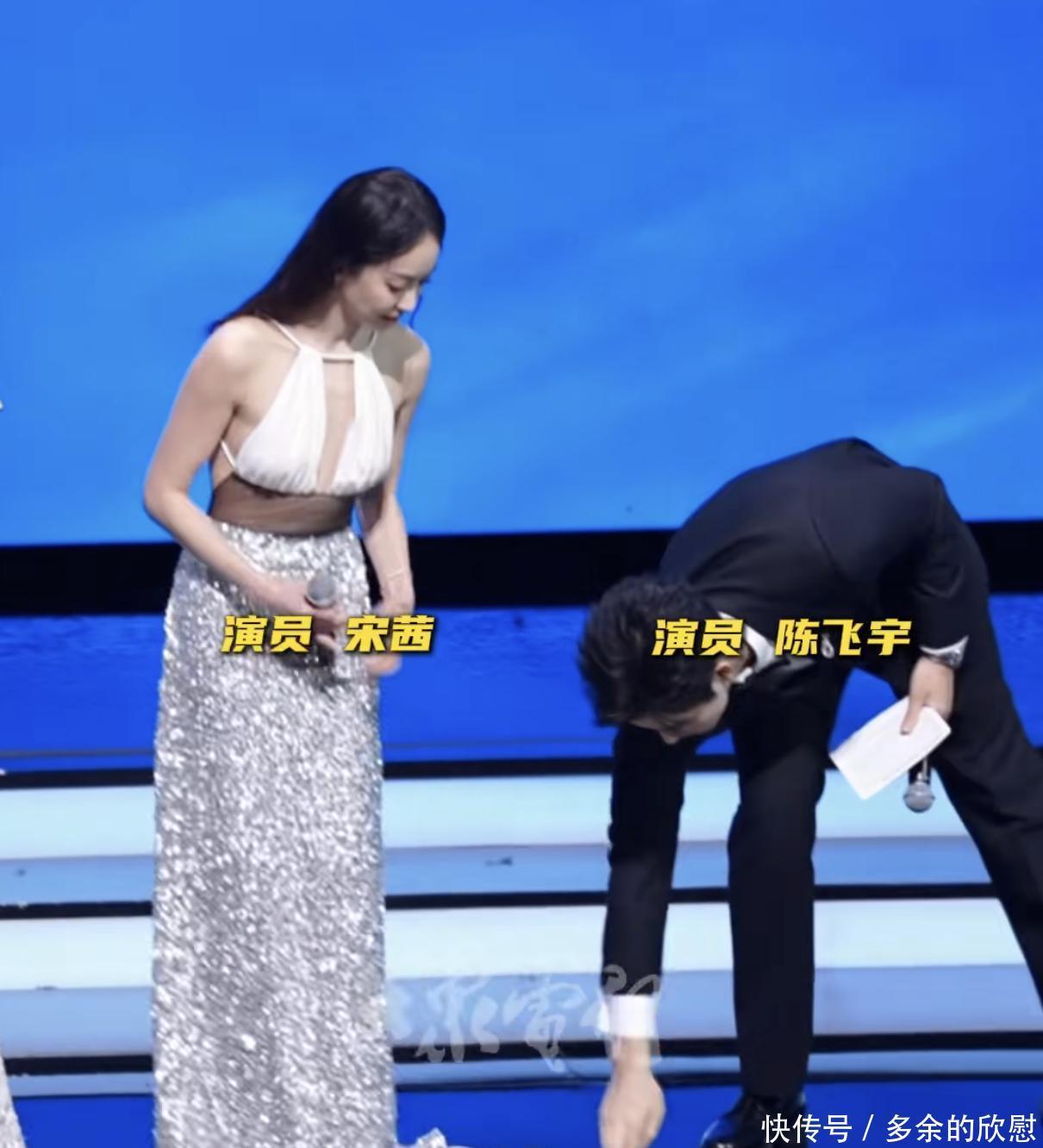 与她同期被受聘为“厦门推介东谈主”的陈飞宇,在她上台时格外贴心肠帮她整理裙摆,很名流。