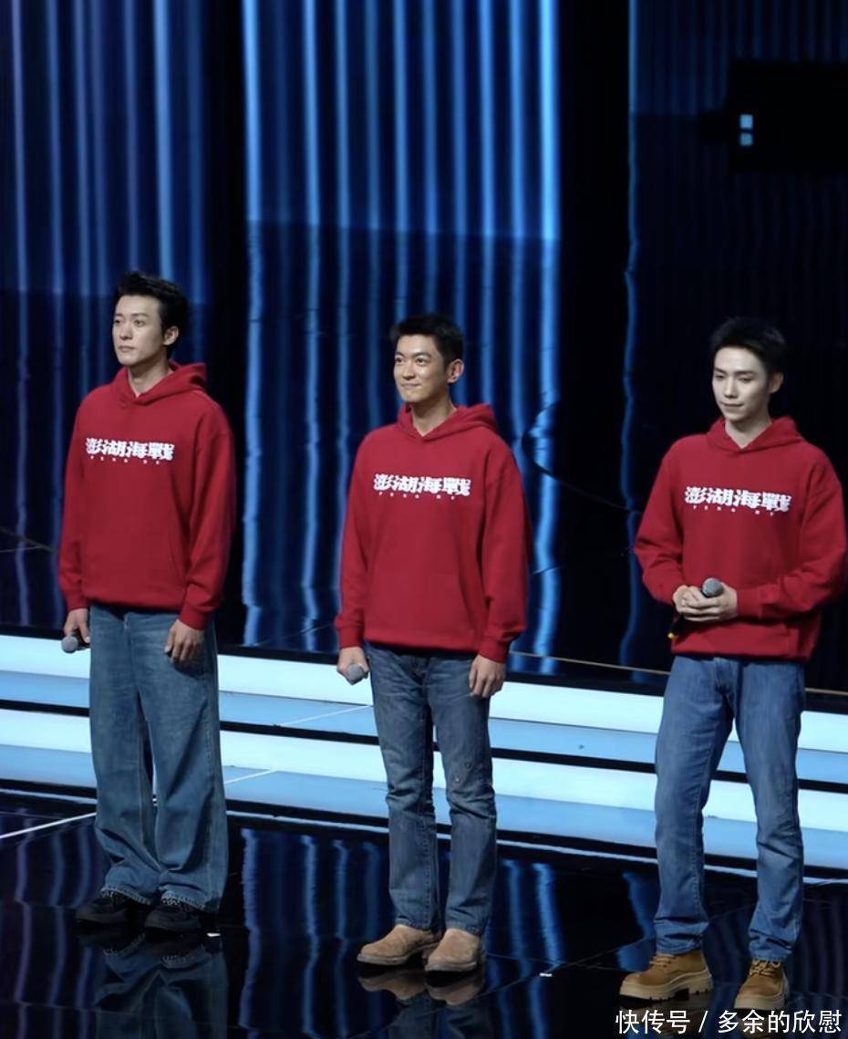 杜江、侯雯元、罗一舟代表《澎湖海战》出席,他们的造型齐格外从简,穿戴印有片名的红色卫衣配淡蓝色牛仔裤。