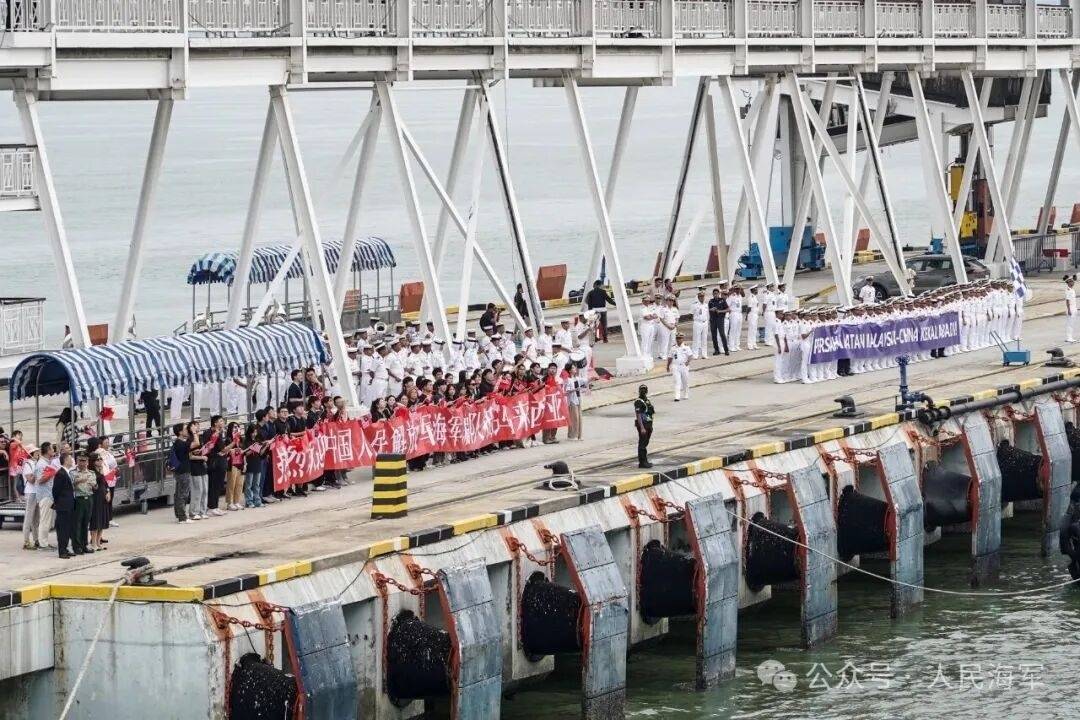 当地时候10时许,中国舟师长白山舰、郑和舰和“上前进1号”船冉冉驶入巴生港船埠。中国驻马来西亚大使馆责任主说念主员、留学生代表、华裔华东说念主代表以及马来西亚皇家舟师官兵等200余东说念主到船埠接待。来自舟师工程大学和舟师航空大学的学员在船面分区排队,向接待东说念主群问候。